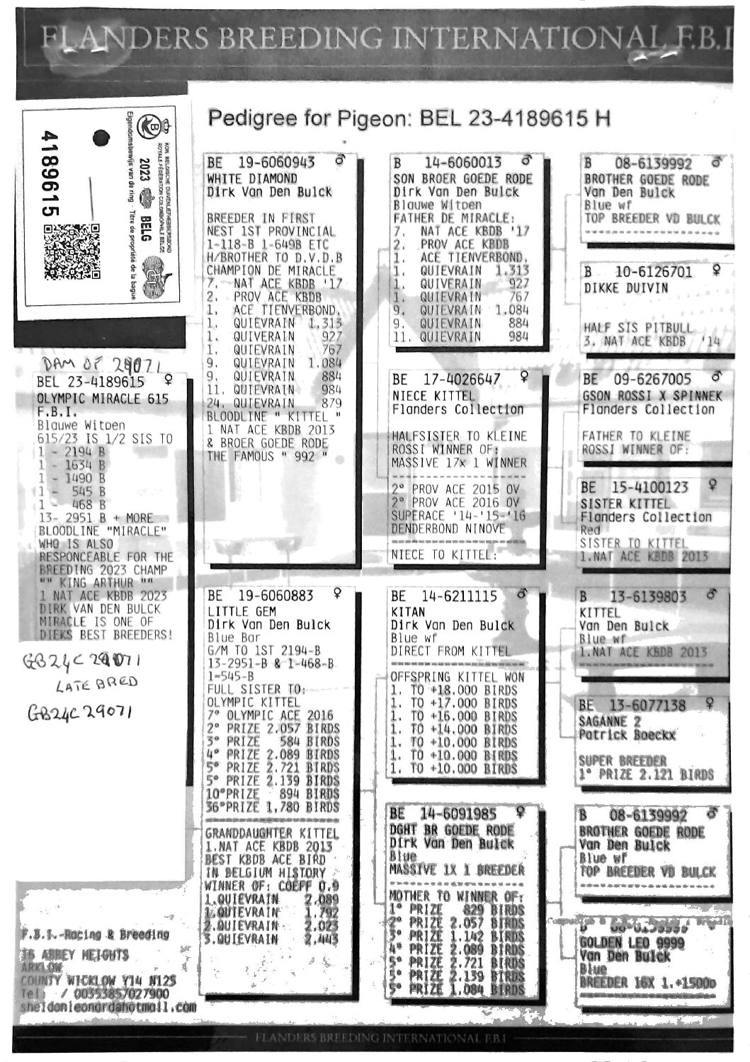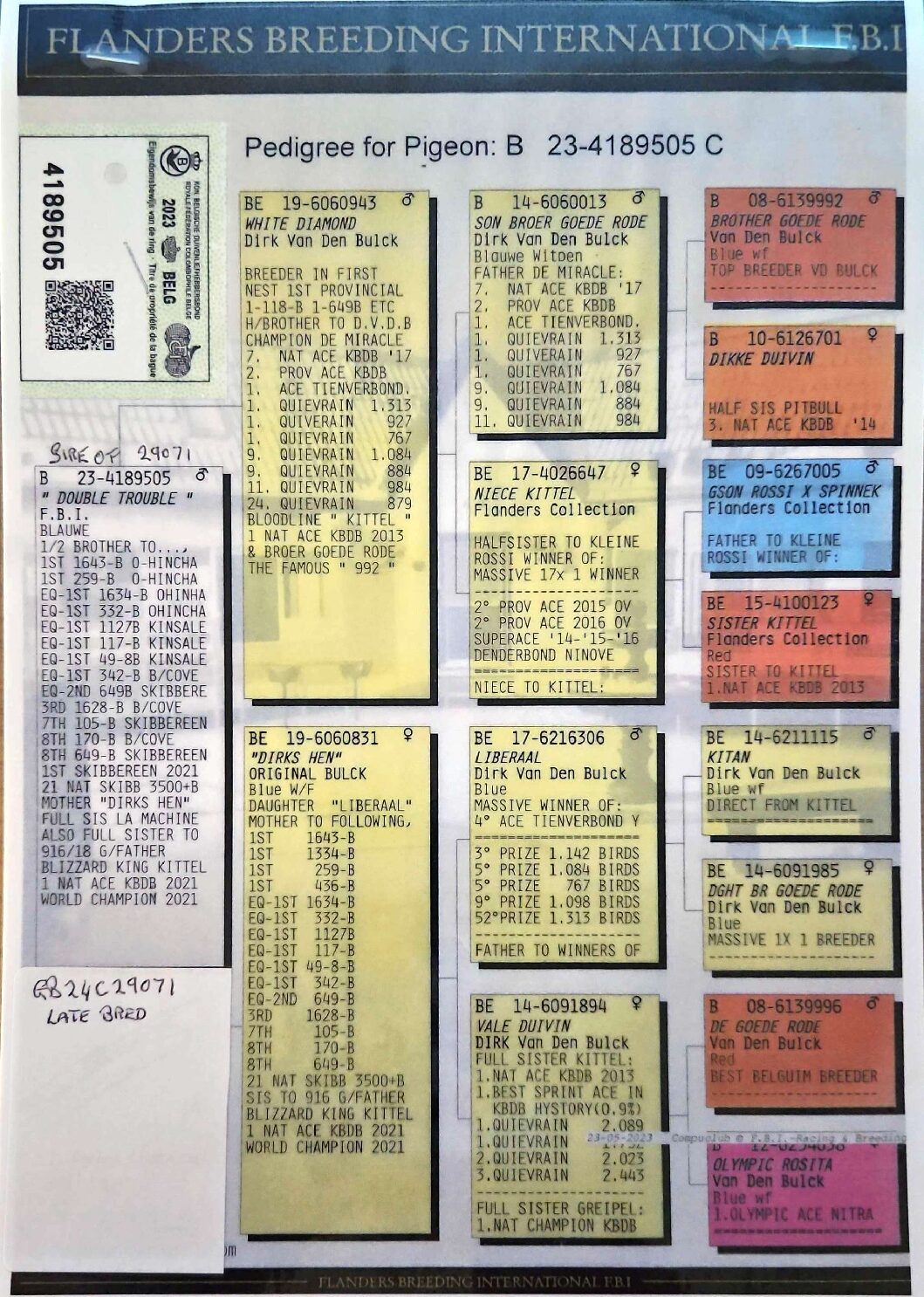 Dalecrest Lofts Stock & OB Race Team Clearance – LOT 12 – GB24 C 29071 – Blue Hen – 2024 Latebred For Stock – Inbred To ‘WHITE DIAMOND’ – Direct Off FBI Bloodlines – Dtr Of ‘DOUBLE TROUBLE’ x ‘OLYMPIC MIRACLE 615’
