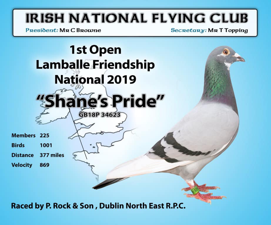 SECTION E-xtravaganza – Lot 3 – Presented By P. Rock & Sons – 2026 Young Bird Off ‘SHANES PRIDE’ – 1st Open INFC Lamballe Friendship National 2019